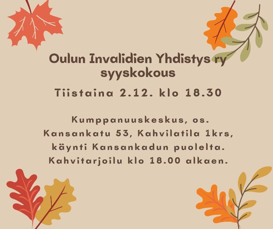 Tulossa - merkitse kalenteriin ! Oulun Invalidien Yhdistys ry järjestää esteettömän luontotapahtuman yhteistyössä Selkäydinvammaiset Aksonin ry:n ja Oulun seudun CP-yhdistyksen kanssa tiistaina…